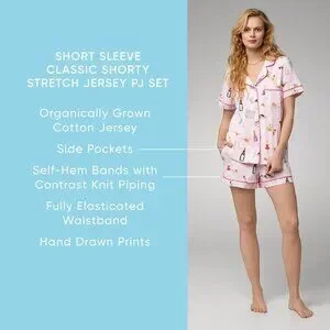 BedHead PJs Women's Organic Cotton Notch Collar Short Sleeve & Shorts Pajama Set — Eco-friendly comfort with a cute, classic vibe.