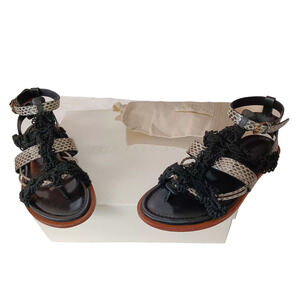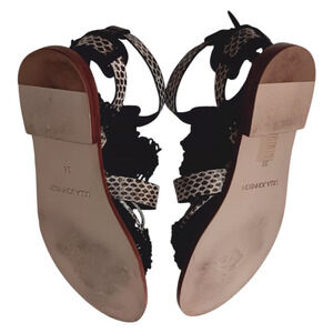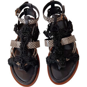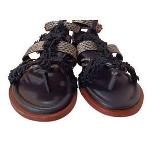 ULLA JOHNSON Petra Sandals Raven 6/36 Flats Black Snake Print Strappy Macramé