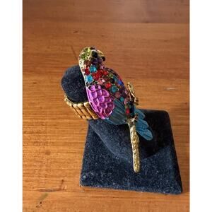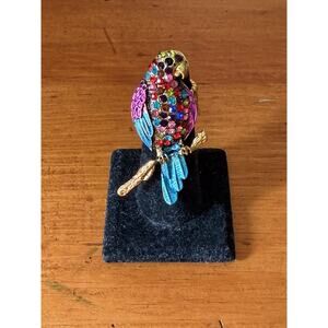 Colorful Parrot Stretch Ring Gold Tone Enamel Rhinestone Macaw Bird Size 7-8