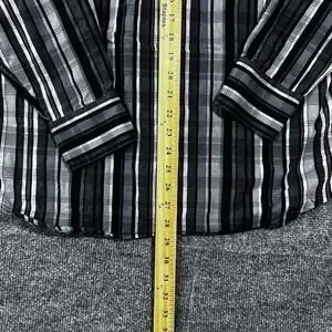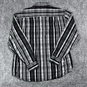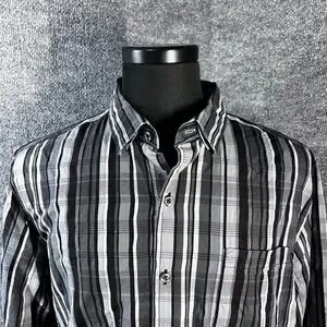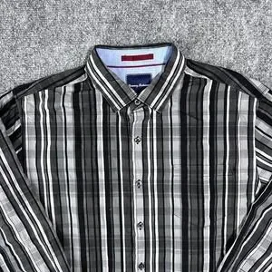 Tommy Bahama Long Sleeve Striped Black White Gray Cotton/Silk Blend Large