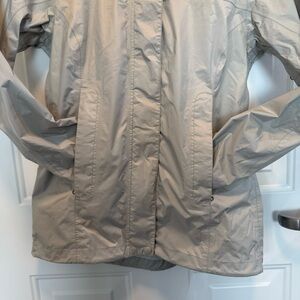 Gently used. Lightweight and great for traveling. It has zippered pockets and vents under the arms. The color is like a light gray/tan. Bundle items from my closet and save more!