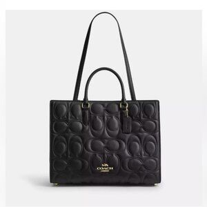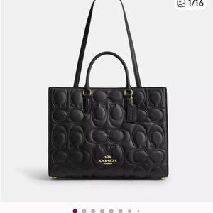 Elegant Coach satchel with bold embossed pattern.