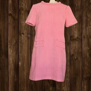Eliza J Braided Trim Boucle Shift Dress Sz 12 Pink Peach Color Lined 60ties $158