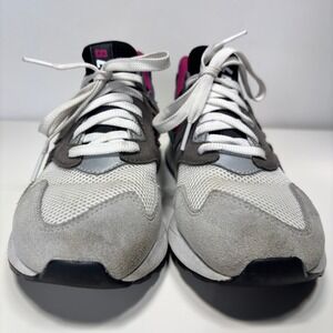Stylish and functional women's sneakers for athletic and casual wear. These New Balance 997 Sport sneakers feature a sleek design with a predominantly gray upper, accented by vibrant pink and teal details that add a pop of color. The ABZORB cushioning provides exceptional comfort and support, making them ideal for running, workouts, or everyday activities. The combination of mesh and suede on the upper offers breathability and durability. Perfect for a gym session, a casual day out, or a sporty streetwear look.