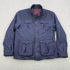 UNTUCKit Jacket Mens Medium Navy Blue Quilted Lined Nylon Full Zip Button Coat
