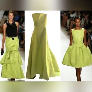 $6,000 OSCAR DE LA RENTA GREEN SILK ELEGANT RUNWAY GOWN US S