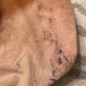Free people used tote with soft genuine outer leather. Heavy pen marks therefore price reflective of it but the leather is soft and durable and overall this piece is ready for a lifetime of wear. Thank you all