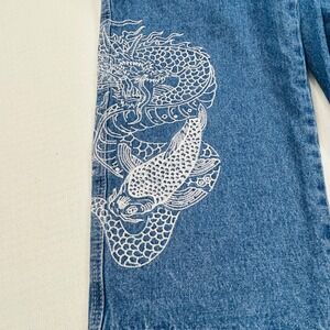 Keywords: Streetwear, Skater, Y2K, Baggy, Graphic Print, Asian Art, Koi, Dragon, Grunge, Indie, Wide Leg, High Waist, Denim, Zumiez, Alternative, Skatercore, Y2K Jeans, Empyre Jeans, Dragon Embroidered Jeans, Koi Embroidered Jeans, Baggy Denim, Skate Jeans, Y2K Streetwear, Skater Jeans, Wide Leg Denim, Zumiez Brand, 2000s Fashion, Graphic Denim, Dragon Jeans, Japanese Drago Embroidery, Statement Jeans
