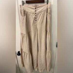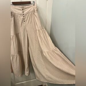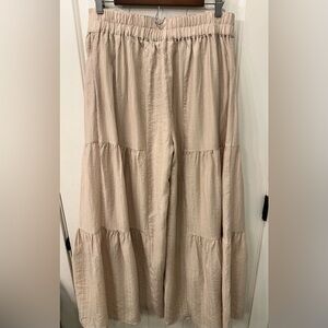 Polagram Tiered Tide Flowy Wide Leg Boho Palazzo Pants - Tan/Beige - L