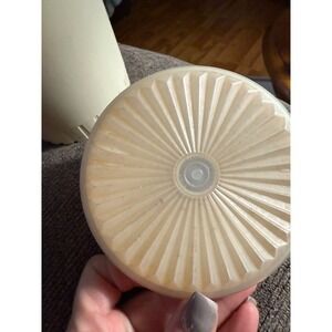 Transport yourself back to a time of simple elegance with this charming vintage Tupperware pitcher. Its creamy hue and delicate floral decal evoke a sense of nostalgic warmth, perfect for adding a touch of retro flair to your kitchen or dining table. The sturdy handle offers a comfortable grip, making it ideal for serving refreshing beverages with ease. The secure yellow lid ensures your drinks stay fresh and spill-free. Imagine using this delightful pitcher for summer picnics, cozy brunches with friends, or simply as a beautiful way to serve water at your family dinner. It's a functional piece of history that brings both beauty and practicality to any occasion.