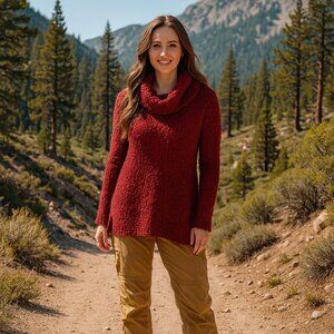 Elevate your wardrobe with this stunning Liz Claiborne sweater. The chunky design and cowl neck make it a stylish addition to any outfit. The burgundy color is perfect for the holiday season and will make you stand out from the crowd. The sweater is made of a soft and cozy polyester and acrylic blend, ensuring that you stay comfortable all day long. It's a regular fit for women in size S and is perfect for any casual occasion. Add this sweater to your collection today and experience the warmth and style that it brings.