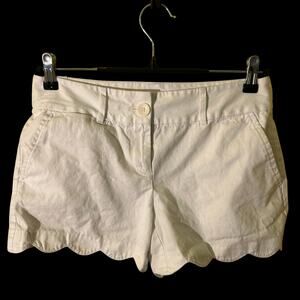 LOFT White Riviera Scalloped Hem Cotton Shorts Womens Size 6 Summer Preppy