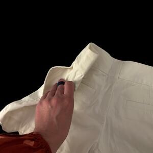 These LOFT Riviera shorts offer a refined and feminine take on a classic summer essential, featuring a distinctive scalloped hem that adds a touch of preppy charm to the silhouette. Crafted from crisp white cotton, these shorts are designed for a polished yet comfortable fit, making them an ideal choice for warm-weather wardrobes and resort wear. The clean lines and unique decorative edge provide a versatile aesthetic that pairs effortlessly with everything from casual tees to structured blouses. As part of the LOFT collection, these shorts represent the brand's focus on providing stylish, accessible fashion for the contemporary woman. Their classic color and elevated detailing ensure they remain a timeless staple for spring and summer seasons. Measurements: 15 inch waist, 8 inch rise, and 3.5 inch inseam. Follow Retro Libby for more vintage and curated modern staples. Shop second hand and shop sustainably to support the circular economy. This crisp white piece is ready for its home.