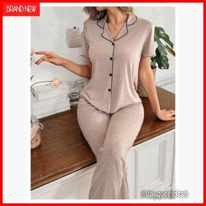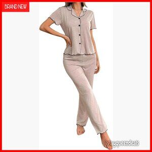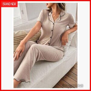 Soft Button Down Pajama Set Short Sleeve Shirt Pants Lounge Sleepwear