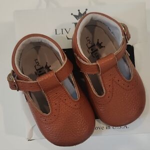 Liv & Leo T-Bars Oxford Dress Shoes Baby Girls First Walker Tan Leather 6m - 12m