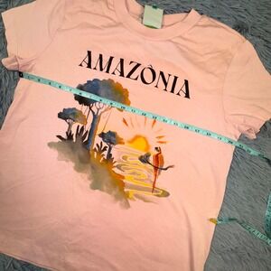 FARM Rio "AMAZONIA" Pink Graphic T-Shirt Womens Medium Organic Cotton Casual Tee