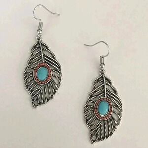 Turquoise Copper Silver Filigree Leaf Drop Earrings NWT