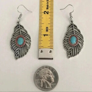 Silver tone stainless steel and zinc alloy drop earrings with French hook ear wires. Faux turquoise. Bundle and save. I ship fast!