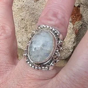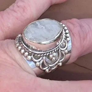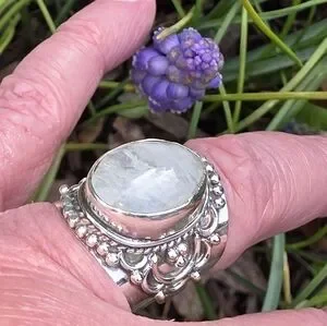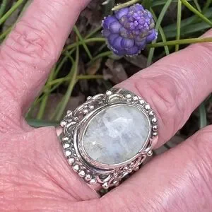 Rainbow Moonstone Boho Style Ring in 925 Sterling Silver