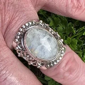Rainbow Moonstone Boho Style Ring in 925 Sterling Silver (6.75)