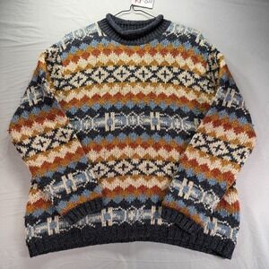 Vintage Grandma Sweater Womens XL Multicolor Knit Wool Blend Geometric Nordic