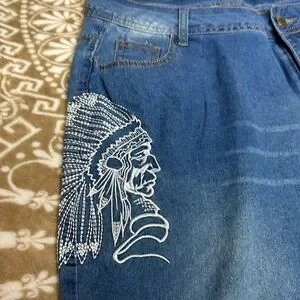 Unbranded Jeans With Embroidery Sz xl Measurements in photos