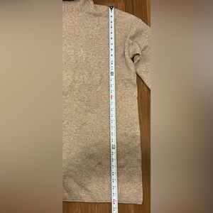The Tuckernuck POMANDER PLACE Dress in Hazelwood Vivianne Beige is a stylish sweater dress designed for women in size M. Made from a blend of polyester, nylon, and rayon, this short sleeve dress features a turtleneck neckline and a solid beige color. Ideal for casual or travel occasions, this short dress exudes a trendy and comfortable vibe. Perfect for adding a touch of sophistication to your wardrobe, this Tuckernuck dress combines fashion and functionality seamlessly.
