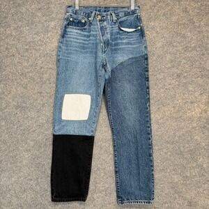 Levi's 501 Patchwork Jeans Womens 27x28 Button Big E Colorblock Blue Black White