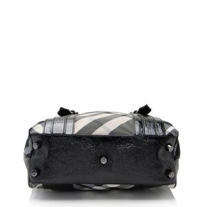Delivery Duty Paid included – The original British luxury brand of Burberry has set an unmatched standard for sophisticated style since its debut in 1856. From the basis of the famous trench coat, the collection has grown into a globally-recognized leader in ready-to-wear, timepieces, and leather goods. Under the creative leadership of Ricardo Tisci, the brand is continuously pushing the limits; integrating modern design while never losing site of its signature check pattern.Condition Notes: Light marks throughout exterior nylon. Creasing and minor scuffs throughout exterior patent leather trim and handles. Surface scratches to hardware. Minor marks throughout interior.Width (at base): 10"Height: 12.5"Depth: 4"Handle Drop: 7.75"Type of Material: Nylon, Patent LeatherColor: Black, WhiteLining: Black NylonPockets: Three InteriorHardware: GunmetalClosure: Magnetic SnapOrigin: Italy Measurments: width: 254 mm height: 317 mm strap length: 0 mm handle drop: 196.85 mm