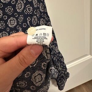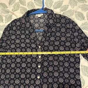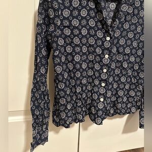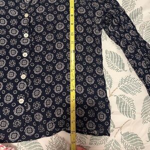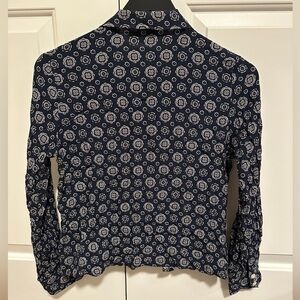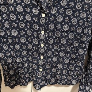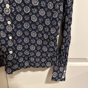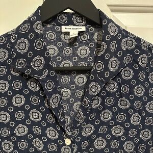 Frank And Oak Navy White floral Paisley Button Down Collared Blouse Size Small