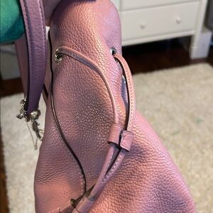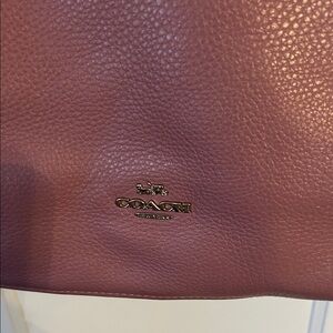 Chic Elle Coach shoulder bag in lavender leather. Features elegant chain accents and spacious interior with pockets