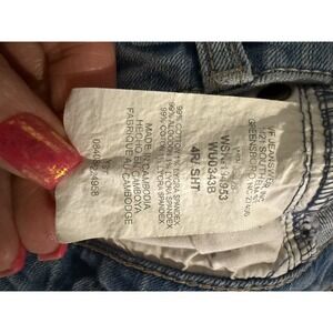 The Wrangler Aura Jeans for women are a relaxed straight leg style in light blue, featuring a solid pattern with a zip closure. Made from a cotton blend denim fabric wash, these jeans have a mid-rise and a 28-inch inseam, making them comfortable and easy to wear. The brand AURA is known for quality and durability, and these jeans also include convenient pockets for added functionality. Perfect for everyday wear, these size 4R jeans offer a classic and stylish look for any casual outfit. AU100