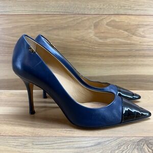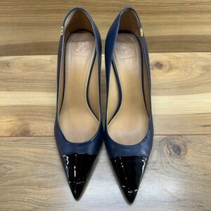Tory Burch Penelope Cap Toe Heels 10 M Navy Blue Black Cap Toe