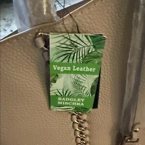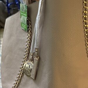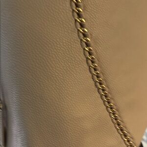 Bagdley Mischka Chic Beige Leather Shoulder Bag with Gold Chain