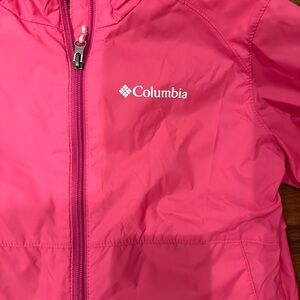 Vibrant pink jacket by Columbia. Features a hood and zipper closure. Great Condition, Columbia Girls size 10/12 Jacket. Waterproof