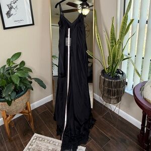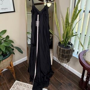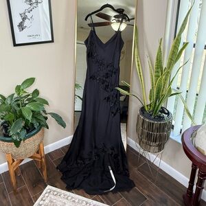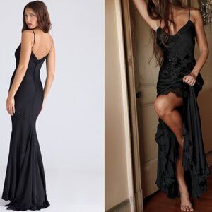 House of CB ANASTELLE Black Hand Beaded Embellished Satin Maxi Dress NWT
