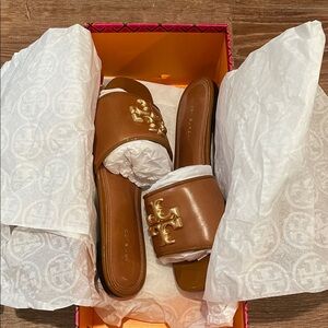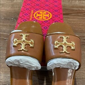 Tory Burch Eleanor Gold Logo Slide Sandals
