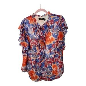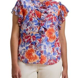 Floral Flutter Ruffle Blouse V-neck Ralph Lauren