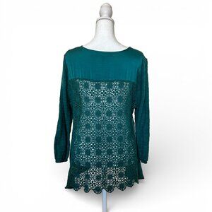 ANTHRO Maeve Emerald Green Peasant Top Crochet Lace Back Boho Blouse M
