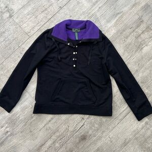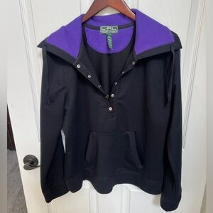 LRL Ralph Lauren Black Pullover Hoodie with Purple Hood Lining