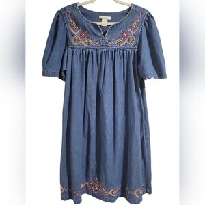 Bechamel Vintage Denim Embroidered Dress Size M Knee-length Pockets