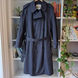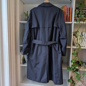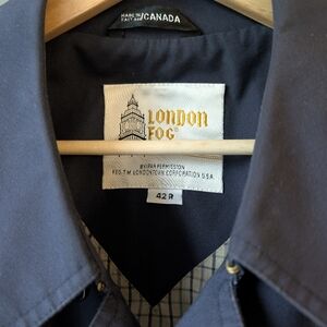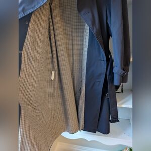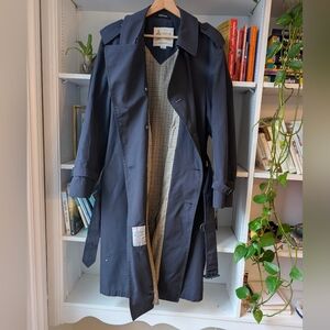 Vintage London Fog Trench Coat Lightweight Oversized Navy Plaid Lining Large 42R