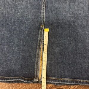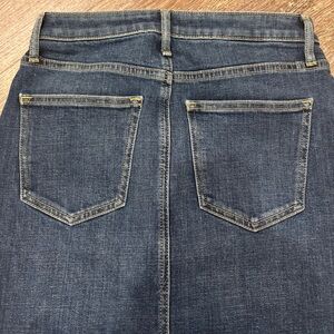 Dark Wash Denim Midi Skirt High Rise Button Fly Pencil Skirt Slit Waist 26