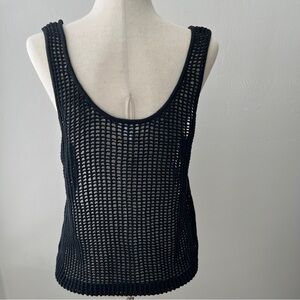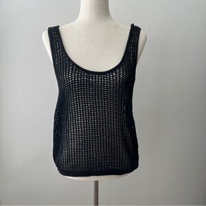 Women’s Black Crochet U-Neck Tank Sweater Future Collective Alani Noelle Size L