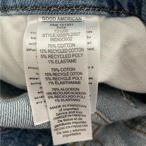 Sleek, sculpting, and effortlessly flattering, these Good American jeans deliver modern edge with their premium Indigo032 wash and subtle frayed detailing at both the waistband and hem. Crafted with a curve‑loving high rise and a straight‑leg silhouette, they blend structure with stretch for all‑day comfort and confidence.