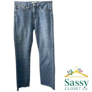 Good American High Rise Straight Jeans Indigo032 Frayed Hem NWOT Size 6
