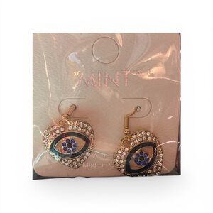 Mint Gold Rhinestone Evil Eye Drop Earrings NWT
