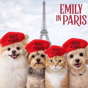 This adorable Emily in Paris pet beret is a promotional product inspired by the hit