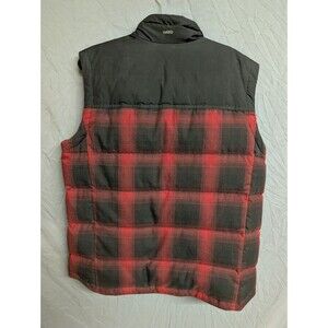 Eddie Bauer Puffer Vest Men's Large Red Black Plaid Goose Down EB 650 Full Zip