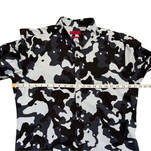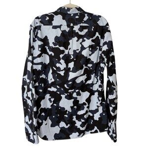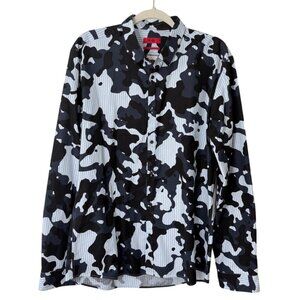 Lightweight long-sleeve shirt featuring a bold camouflage design, button-up front, and collared neckline for a modern, standout look.